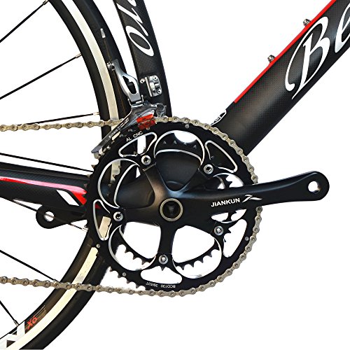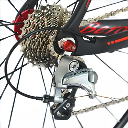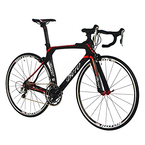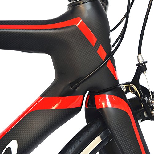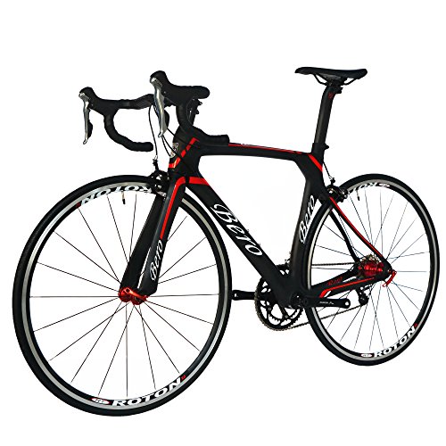 BEIOU® 2016 700C Road Shimano 105 Bike 5800 11S Racing Bicycle T800-M40 Carbon Fiber Aero Frame Ultra-light 18.3lb CB013A-2 Model:BO-CB013A-2 Finish:3K Matte Black Red Material:Toray T800-M40 Carbon Fiber Size:700C* 500mm 520mm 540mm 560mm Frame:BEIOU Carbon Fiber Unibody Ultra-light Frame Drop Handlebar:BEIOU Carbon Unibody 420mm*31.8mm Aerobar Seatpost:BEIOU Carbon Unibody Wind-breaking Ultra-light Seatpost Stem:Beiou Ultra-light Aluminum Stem 31.8mm/90mm Speed Control System:SHIMANO 105 5800 (11S) Crankset: JIANKUN MPE-622J-PT 53-39T CNC BB:EN 68mm screw-in Front derailleur:SHIMANO 105 5800 (11S) Rear derailleur:SHIMANO 105 5800 (11S) Derailleur lever:SHIMANO 105 5800 (11S) Freewheel:SUNSHINE(11S) 11-28T Chain:YBN 11 Speed Braking Method:SHIMANO 105 5800 C-Brake Brake set:SHIMANO 105 5800 (11S) Brake Lever / Z.STAR Road Bike Clip Brake Handbrake:SHIMANO 105 5800 (11S) Fork:BEIOU Carbon Unibody Reduce Wind Drag Cable Routing:Internal Cable Routing Wheelset:ROTON Road Bike Wheelset 700C 20H 24H Red Hub +Black Spokes +Black Rim/Front 2 Rear 4 Bearing 11S Saddle:BEIOU Road Saddle Pedal: Wellgo M248 Tire: Kenda 700C*23mm 60TPI Accessories: Multi tools, Pedal Bike Weight:About 18.3lb Package Size: 1350mm*220mm*750mm