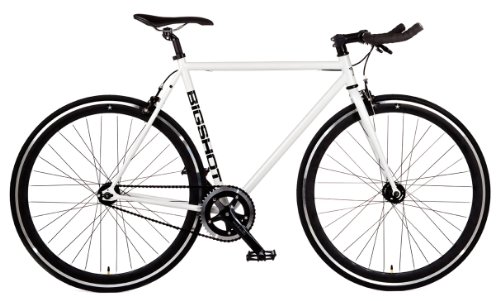 Fixed Gear Bikes Big Shot Copenhagen Fixed Gear Single Speed Fixie Urban Road Bike Looking good never looked so easy.  The bright white, 4130 chromoly frame stands out against the black wheels, saddle, and bars while the flip-flop hub makes the bike single speed or fixed gear compatible.  Available in 52, 56, and 60cm sizes, the Copenhagen puts a new spin on a classic color combination. All Big Shot Bikes come equiped with Race-inspired track geometry, Front and rear dual caliper brakes, 43mm Deep V Rims, and Rear flip-flop hub that lets you ride as a single speed or fixed gear. $329.00 http://ecx.images-amazon.com/images/I/51n4J3Ud1HL._SL160_.jpg
