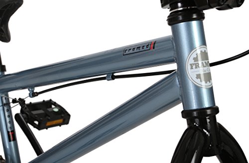 Frame: HiTen SteelFork: 1-1/8th Hi-Ten SteelBars: Framed 2pc Bars 8"x 28"Grips: Velo Mushroom 150 mmStem: Framed Alloy Front LoadHeadset: Neco Press inBrake Lever: Framed Alloy LeverBrake: Framed Alloy U-BrakesCranks: 1 pc Forged Steel 175mm w/ Unsealed American Bottom BracketSprocket: 36t SteelChain: KMC Z410Pedals: 1/2" Nylon CompositeFront Hub: Shrapnel Fragment Alloy Hub, 36h w/ ? axleRear Hub: KT Unsealed Alloy hub w/14t Freewheel, 14mm AxleRims: 20" Single Wall Alloy 36h Pinned RimTires: Wanda King, Front 20" X 2.125", Rear 20" x 1.95"Saddle/Post: 1 pc Seat and Seat post comboClamp: Framed Alloy ClampPegs: Not IncludedTop Tube: 20.5"Stand Over: 8"Chainstay: 13.5"BB Height: 10.5"Wheelbase: 38"Weight: 25lbs 2oz (weights may vary slightly)