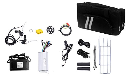 Tenive Electric Bike Conversion Kit - 26" Rear Wheel 48v 1000w Electric Battery Powered Bicycle Conversion Kit ( Battery not included ) Do you want to spend little money to have a electric bike? This Bicycle Conversion Kit can help you. It suits for most 26" rear wheels. High power brushless hub motor that allows up to 45KPH top speed! Two hand brakes to help stop the motor. At the same time, easy to install, complete instruction manual included. It's perfect for short trip and exercise Battery recommendation: Electro kinetic cell battery ( lithium, lead-acid) featured in nominal voltage 48V, nominal capacity total 4 batteries (each battery is 10-12AH) is compatible with the motor. Package Contents: 1x Powerful 48V 1000W brushless hub motor 1 x 26" rear wheel (the whole wheel with tire and spokes) 1 x Electric controller 1 x Thumb throttle 2 x Aluminum brake handlebars 1 x Pedal Sensor 1 x 48V lead acid battery charger 1 x Battery carrying bag and harness (Random color) 1 x Rear bracket 1 x Instruction manual Please note that the bike in the pictures is not included for demonstration only.