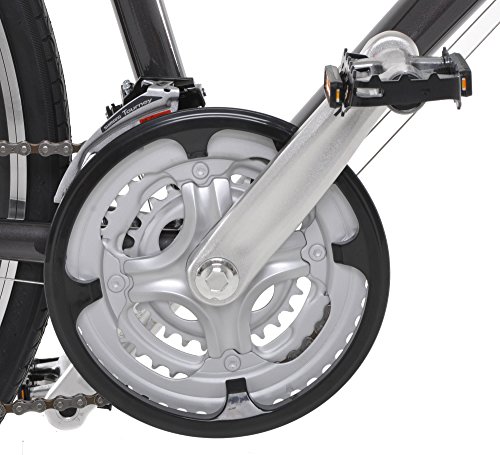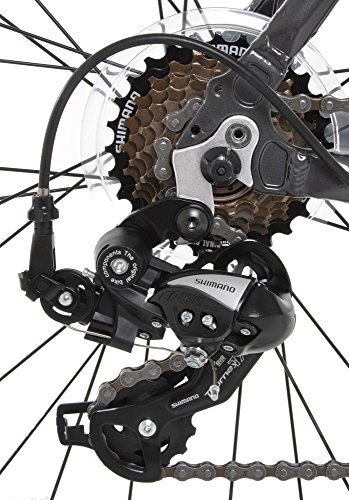 The Vilano performance hybrid bike offers Shimano components for fast, fun fitness riding and commuting. It features a 6061 Aluminum frame with aero tubing and an integrated straight blade fork. The Shimano components provide fast reliable gear changes. Additional features include water bottle mounts, rear rack mounts and ergo comfort saddle.Full Specs:Speeds: 21Frame: 6061 Double Butted AluminumFork: Hi-Ten steel straight bladeShifters: Shimano TX-50 3/7 Speed SISFront Derailleur: Shimano TX51Rear Derailleur: Shimano TX35Crankset: ProWheel Triple w/ chainguard 48/38/28T Stem: AlloyBottom Bracket: Sealed Cartridge Freewheel: Shimano MF-TZ21 7 speedChain: KMC Z Hubs: 32-hole KT Alloy w/ Quick ReleaseRims: 700c Doubled Walled CNC Machined Sides Tires: Kenda 700c x 28cBrakes: Alloy Linear Pull V-BrakeHeadset: Integrated Sealed 1 1/8" Alloy Handlebar: Alloy Riser Saddle: Ergo ComfortSeatpost: Alloy