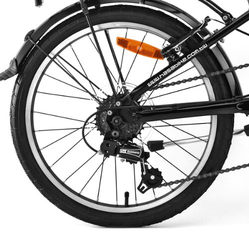 Brand: HASA (Taiwanese Brand and Made in Taiwan)Frame: HASA Alloy 6061 Aluminum LightFork: HASA Alloy 6061 Aluminum Light 20"Stem: TIMELESS DS050 Steel (adjustable height)Height from Ground to Handlebar: Lowest: 98cm or 38.6", Highest: 110cm or 43.3"Handlebar: Alloy Flat Bar 510mm LongSeatpost: Alloy 40.2mm x 510mmSaddle: VELO Comfort Soft Saddle VL-4022Shifter: SRAM MRX 6 Speed MRX-204-640Brake Levers: PROMAX Alloy BL-46GBrakes: Front: PROMAX TX-107C; Rear: PROMAX TX-107CDerailleur: Rear: SHIMANO RD-TY18SSD 6 SpeedCrankset: JLATAI JT0S1022 170mm 48 Teeth Aluminum Alloy with Chain GuardCrank Arm Length: 170mmBottom Bracket: HONGTLAN HT-W01 With Ball BearingCassette: SHIMANO MFTZ20 6 Speed 14-28TChain: KMC C30 106 LinkRims: Aluminum Alloy 20" 28 HolesHubs: ACCESS Aluminum Alloy Hubs AE-601F and AE-601R Both 28 HolesSpokes: Stainless Steel 14GTyres: KENDA 20"x1.5 K-193Tubes: KENDA 20'x1.5Pedals: VP Folding Type: VP-F55Mudguards: Plastic IncludedRear Rack: Steel with Rear Light Holder IncludedWeight: Approx. 12.5kg or 27.5 lbs (Including Mudguards and Rack)Folding Size: 84cm x 64cm x 33cm 33" x 25" x 13"Folding Time: Approx 10 SecondsWarranty: 5 years on Frame, One year on parts except brake pads, tyres and tubes.