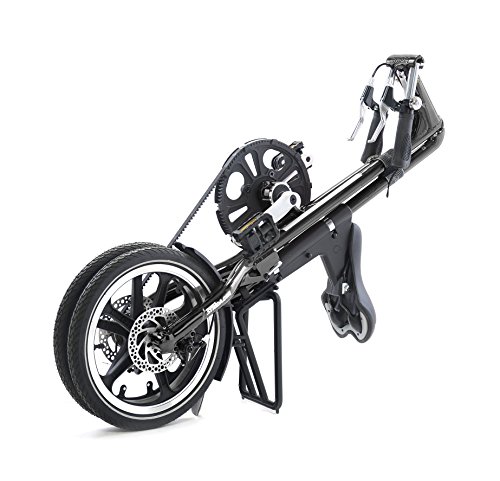 The STRiDA LT is first completely new bicycle geometry in 95 years. Inside a triangular frame of lightweight aluminum, power is transferred to the rear wheel via a silent clean Kevlar belt. Handlebars are mounted horizontally so the rider can sit comfortably upright with an excellent view of the road. The genius of the triangular frame is that it can quickly fold. In five seconds, you have a light, compact form that you can easily wheel, stow in a closet, load in your car or take on the train. Available in White, Black, Red or Turquoise paint schemes.